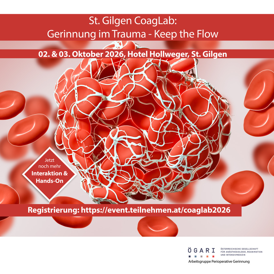 Gerinnungskurs 2026 der ÖGARI-Arbeitsgruppe für Perioperative Gerinnung, von 02.-03.10.2026 in St. Gilgen am Wolfgangsee